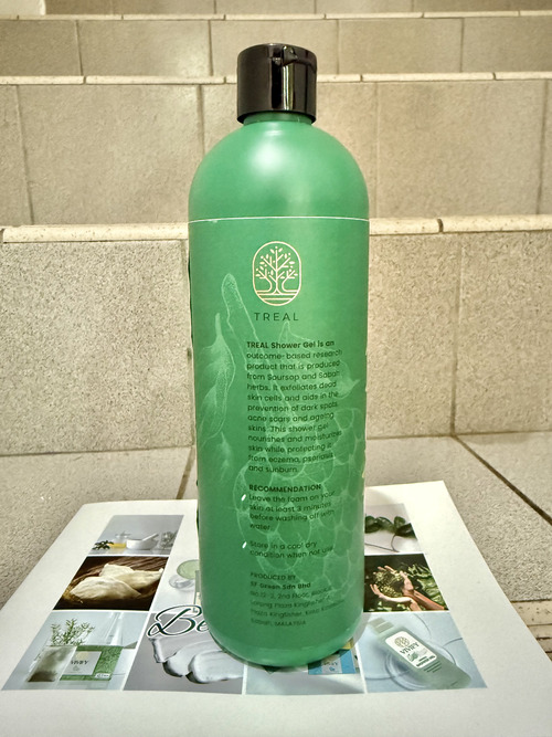 TREAL Shower Gel is an outcome-based research product that is produced from soursop and Sabah herbs, it exfoliates dead skin cells and aids in the prevention of dark spots, acne scars, and ageing skins. This shower gel nourishes and moisturizes skin while protecting it from eczema psoriasis and sunbum.